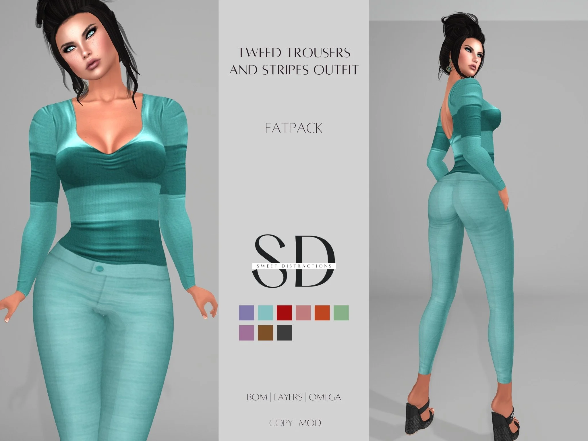 Feel great and look great in this casual pair of tweed trousers and matching striped knit top.